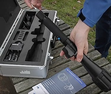 Um die Handhabung über große Entfernungen genauer und sicherer zu machen, sind die Agrilaser Handheld mit einem Rotpunktvisier ausgestattet. Das Visier ermöglicht es dem Bird Controller, den Handheld genau auf das gewünschte Ziel auszurichten, bevor er den Laser aktiviert.